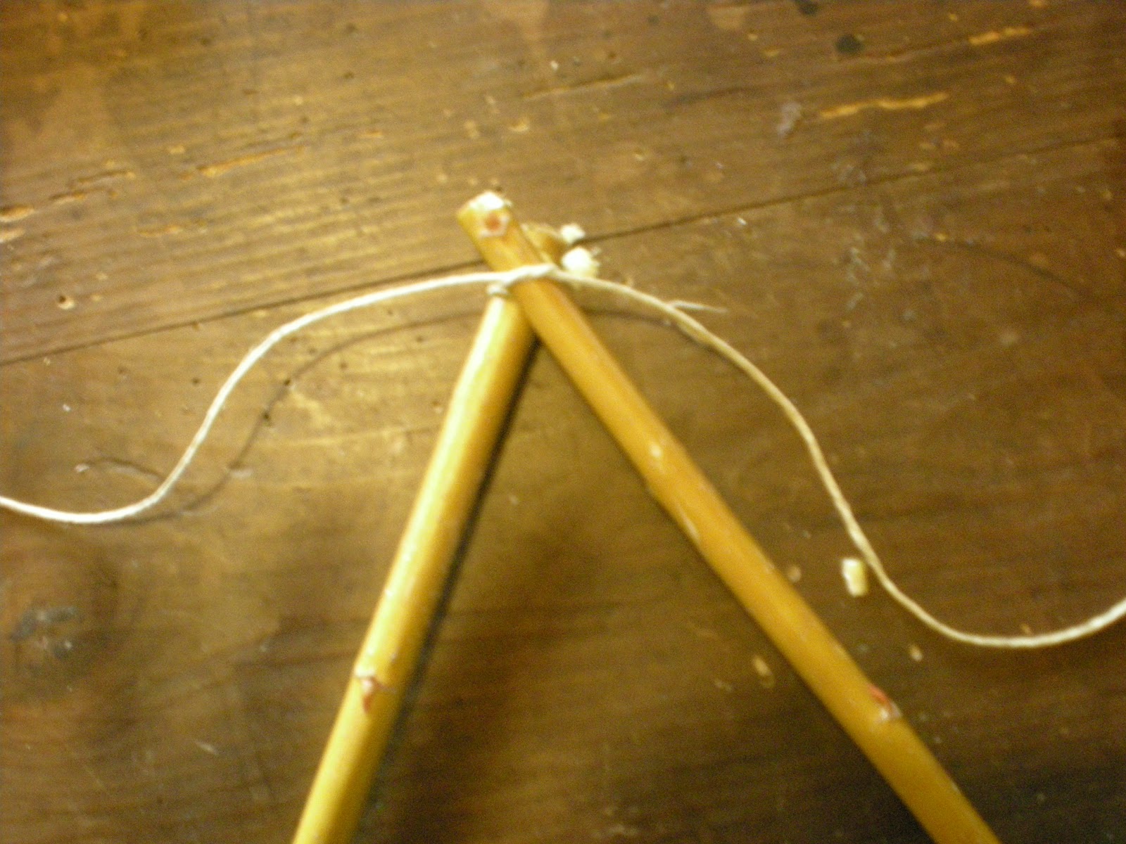 Fixer chaque pointe de l'étoile à l'aide de ficelle: